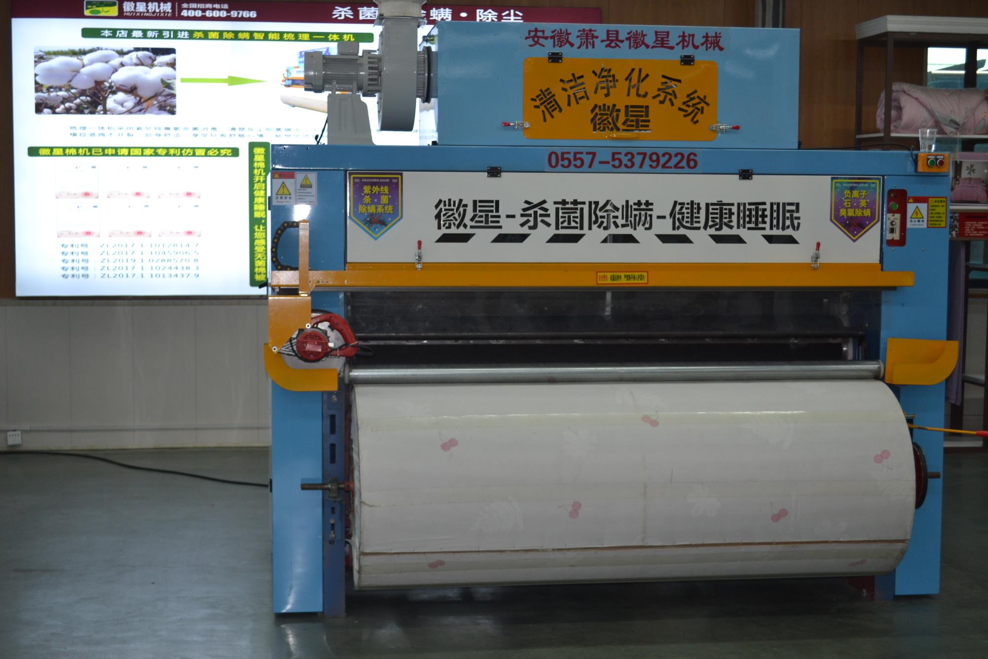 產(chǎn)品簡介:全自動彈花機(jī)是徽星彈花機(jī)的專利產(chǎn)品梳棉花機(jī)器,,一次成型全自動梳棉花機(jī)器,寬度任意調(diào)節(jié),大小被子任意做,而且是封閉吸塵梳棉機(jī),可用照明電,3千瓦,非常適合沒有三相電的客戶朋友。